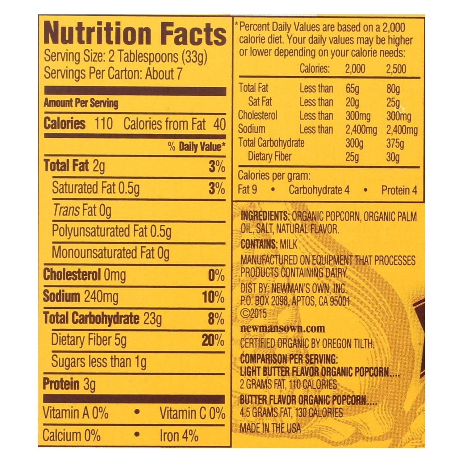 Kirkland popcorn nutrition label