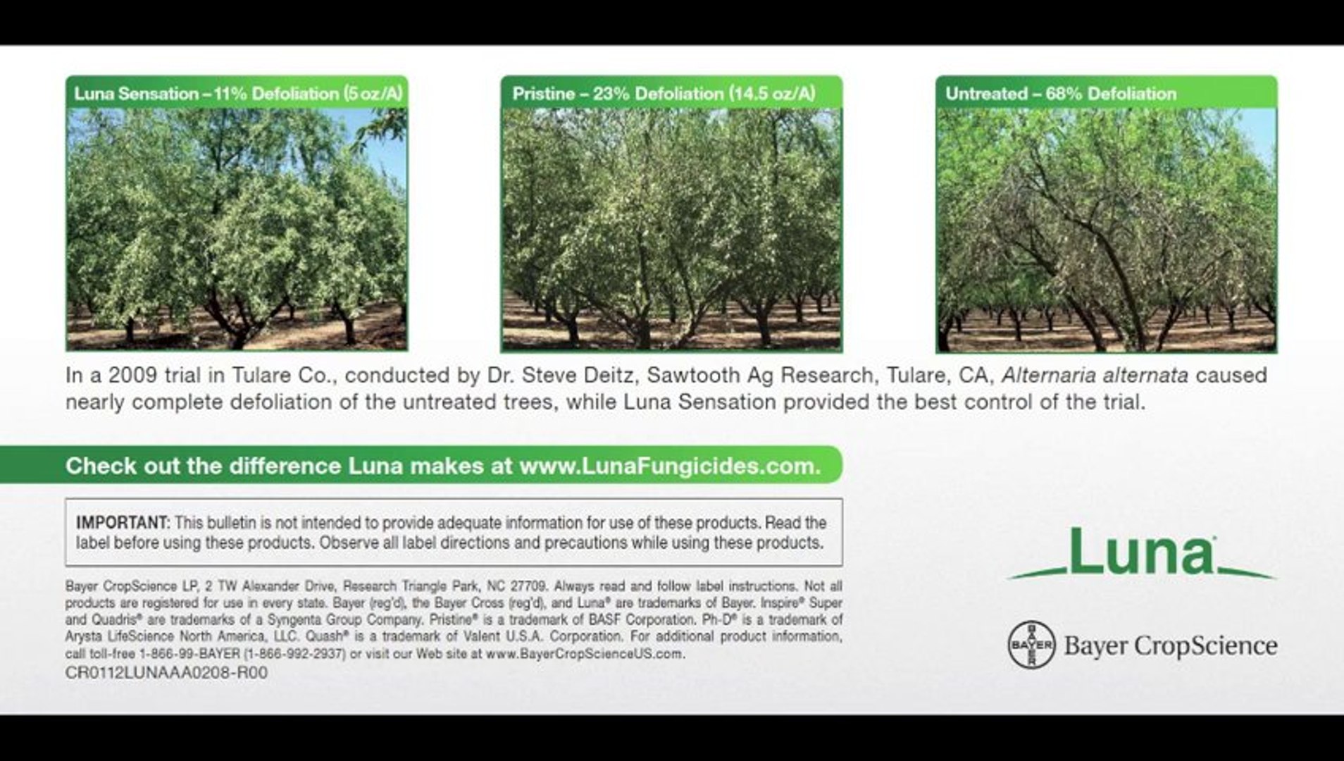 Luna Fungicides | Crop Science US Luna Luna ® Fungicide Helps Ensure a Beautiful, Abundant Harvest Effective on a wide range of crops, Luna fungicide provides unprecedented control of some of the most problematic fungal diseases to help growers deliver the best possible fruits, nuts and vegetables. Overview Labels / MSDS Resources Luna Key Benefits Exceptional Efficacy Luna Sensation - plantproducts.com Luna Sensation: LUNA® SENSATION is a broad-spectrum fungicide with preventative, systemic, and curative properties labeled for the control or suppression of certain crop diseases. ... Quantity/case: 200155: Luna Sensation: 64 floz: 8 : Resource Centre : SDS: Label : By viewing this page you agree to the Plant Products website terms and ...