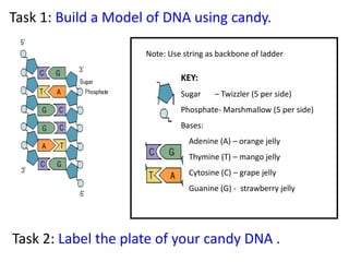 PDF DNA Structure: Gumdrop Modeling - Stanford University Circle and label the backbone and the bases of the DNA molecule below backbone bases * Your nucleotide pairs do not need to be in this exact order, as long as the A/T and C/G pairing are correct! Great! You just made a model of a little piece of DNA. Almost all living things have DNA that looks just like this - from people to dogs to cacti!
