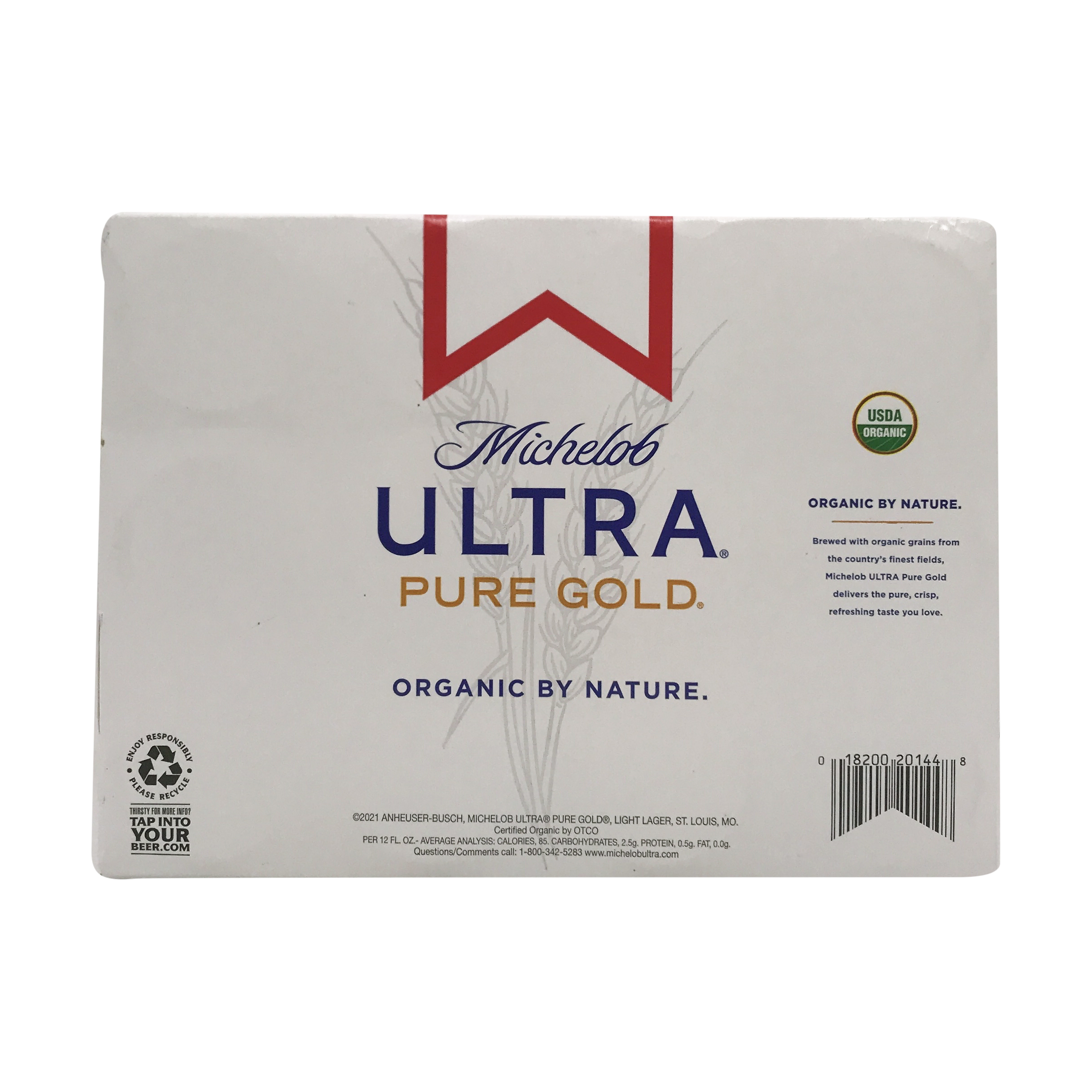 Michelob Ultra Pure Gold In - Online Groceries | Albertsons Beer, Organic, Light Lager. Superior light beer. 2.5 carbs. 85 cals. USDA Organic. Certified Organic by OTCO. Free from artificial flavors. Free from artificial colors. With intention. It's simple. With Michelob Ultra Pure Gold, you get the pure refreshing taste you enjoy, with organic ingredients sourced from the finest farms in the country.