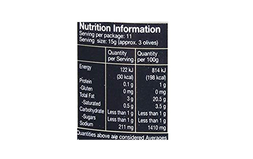 Kroger, Olives, Spanish Nutrition Facts & Calories NUTRITION FACTS (% of daily value based on 2000 calories per day) Protein. Carbs. Fiber. Fat. Saturated Fat. ... NUTRITION LABEL ... Nutrition Facts. Kroger, Olives, Spanish. Serving Size: olives (14g) * Amount Per Serving ; Calories: 23 cal : Calories from Fat: 20.7 cal