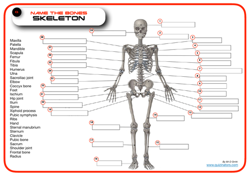 skeleton label Quiz - PurposeGames.com This is an online quiz called skeleton label There is a printable worksheet available for download here so you can take the quiz with pen and paper. Your Skills & Rank Total 0 Get started! Today's Rank -- 0 's Points One of us! 28 to score the 28 points available