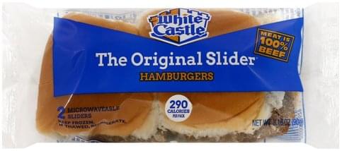 White Castle Microwaveable Hamburgers - 6 Count - Albertsons Sliders with grilled onions on our signature bun. 13 grams of protein per serving. This product contains a bioengineered food ingredient. Made with 100% beef. Easy to heat. Fun to heat. Fully cooked. Kick your crave up a notch. White Castle invented the original slider. Then we invented the cheese slider.