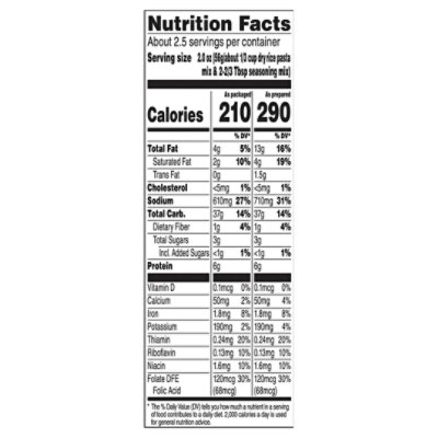 Calories in Rice A Roni Spanish Rice - Calorie, Fat, Carb, Fiber ... Calories in Rice A Roni Spanish Rice based on the calories, fat, protein, carbs and other nutrition information submitted for Rice A Roni Spanish Rice. main content Live Healthy & Happy Calories in Rice-A-Roni Cilantro Lime Rice and Nutrition Facts - FatSecret Rice-A-Roni Cilantro Lime Rice Nutrition Facts Serving Size 1/4 cup (56 g) Amount Per Serving Calories 260 % Daily Values* Total Fat 8.00g 10% Saturated Fat 1.500g 8% Trans Fat 1.000g Polyunsaturated Fat 2.000g Monounsaturated Fat 3.500g Cholesterol 0mg 0% Sodium 840mg 37% Total Carbohydrate 44.00g 16% Dietary Fiber - Sugars - Protein 4.00g Rice A Roni Rice, Beef Flavor: Calories, Nutrition Analysis & More ... For most people, this means less than 50 net carbs per day. Net carbs are calculated by subtracting fiber from total carbs. Example: A product with 26 grams of total carbohydrates and 9 grams of fiber will have 17 grams net carbs. Math equation: 26 - 9 = 17 IMPORTANT: Net carbs are per serving. Make sure you know your serving size or else you ... Rice A Roni Creamy Four Cheese Rice & Vermicelli Mix - Fooducate Personalized health review for Rice A Roni Creamy Four Cheese Rice & Vermicelli Mix: 240 calories, nutrition grade (C), problematic ingredients, and more. Learn the good & bad for 250,000+ products. ... Why do the nutrition labels on some products say that there are no trans fats, while Fooducate insists there are? Unfortunately there is an FDA ...