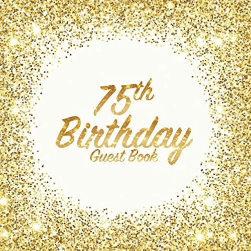 75th Birthday Guest Book: Party celebration keepsake for family and friends to write best wishes, messages or sign in (Square Golden Glitter Print)