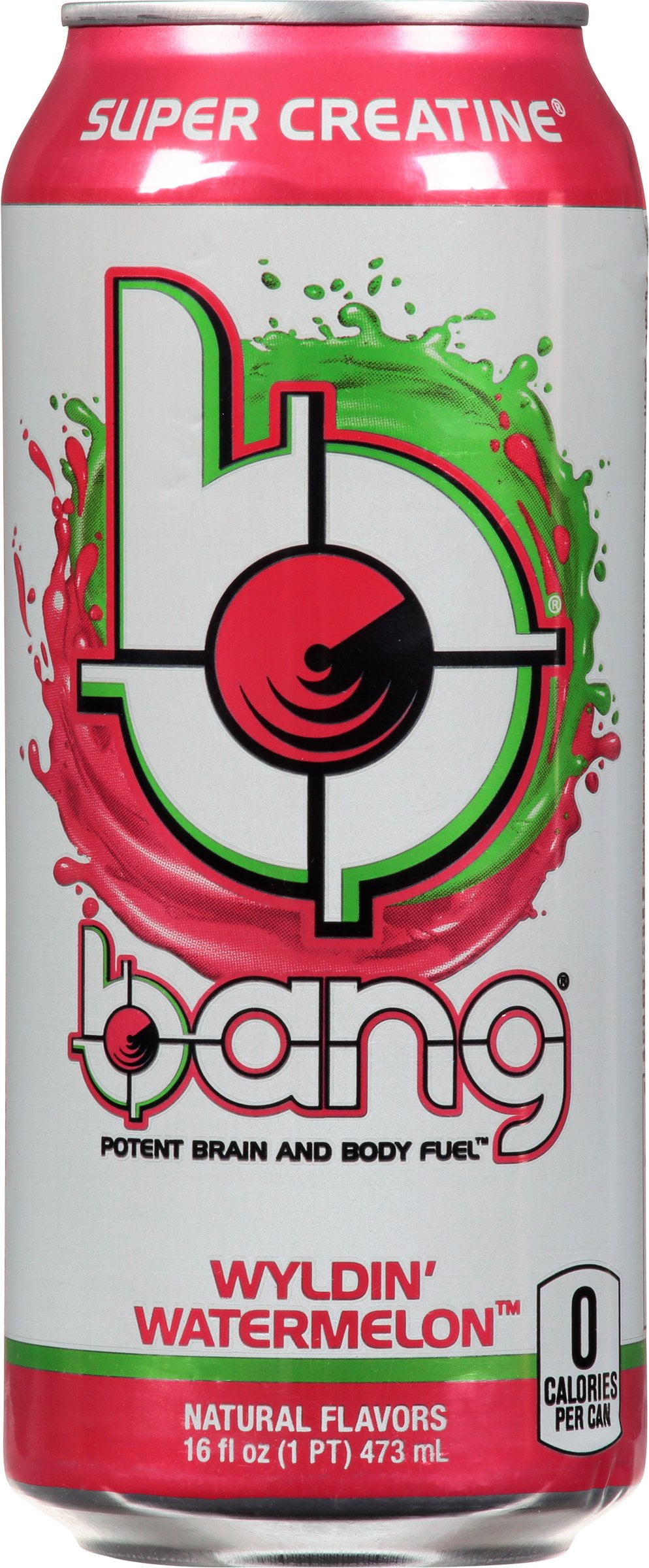 Bang - Bang, Energy Drink, Nectarine Blueberry (16 fl oz) | Shop ... Super creatine. EAA aminos. Ultra COQ10. By the makers of the legendary Redline Energy products. Make no mistake - Bang is not your stereotypical high-sugar, life-sucking soda masquerading as an energy drink! High-sugar drinks spike blood sugar, producing metabolic mayhem causing you to crash harder than a test dummy into a brick wall. Power up with Bang's potent brain & body-rocking fuel ...