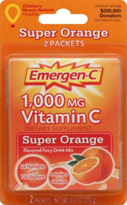 PDF Supplement Facts - Emergen-C Emergen-C 1,000 mg Vitamin C -Super Orange Dietary Supplement This is the most current labeling information and may differ from labels on product packaging. If there are any differences between this website labeling and product packaging labeling, this website labeling should be regarded as the most current.